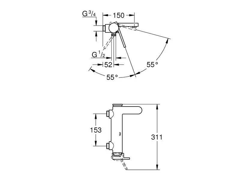 Badewannenarmatur GROHE Plus 153 mm, 3/4″