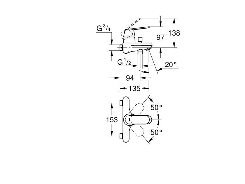 GROHE Badewannenarmatur Eurosmart Cosmopolitan 153 mm, 3/4″, Chrom