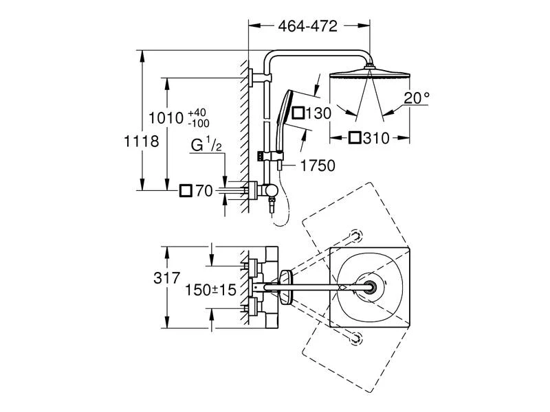 Der hochwertige Thermostat ermöglicht die Wassertemperatur für Sie während der gesamten Duschzeit konstant zu halten. Die schwenkbare Kopfbrause bietet Ihnen die Möglichkeit, die Ausrichtung des Wasserstrahls ideal auf Ihre Bedürfnisse anzupassen. Auch die Handbrause können Sie über einen Schieber in verschiedene Positionen fixieren. Komfort, den man ihn sich für ein genussvolles Duschen wünscht.