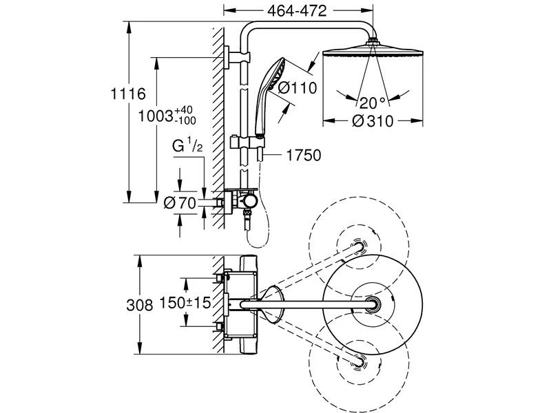 - Kopfbrause: Ø 310 mm / Handbrause: Ø 110 mm