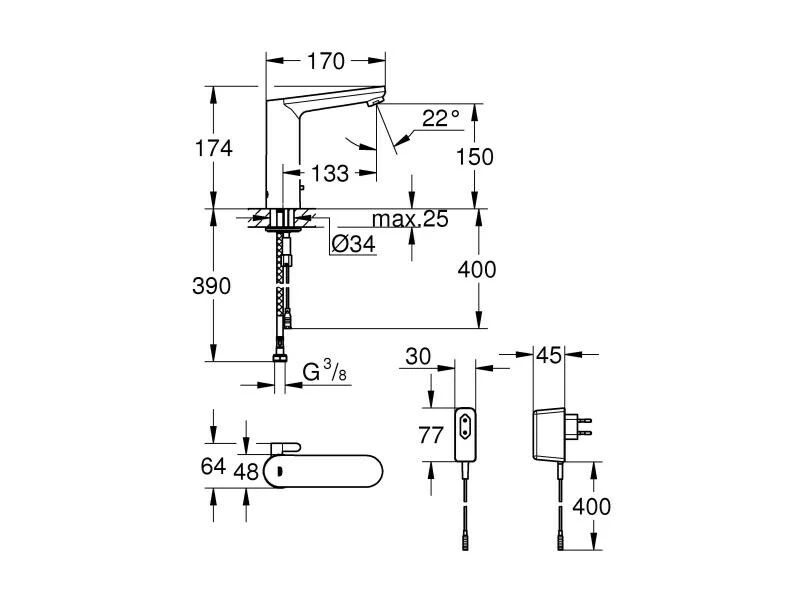 GROHE Elektronische Armatur Eurosmart L-Size 1/2″, Chrom