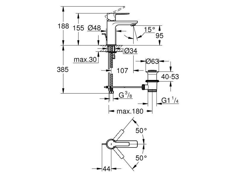 GROHE Lavaboarmatur Lineare XS-Size 1/2″, Chrom, mit Zugstange