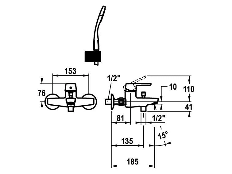 - Einhebelmischer, mit Handbrause KWC FIT-S, Brausenschlauch und Brausehalter