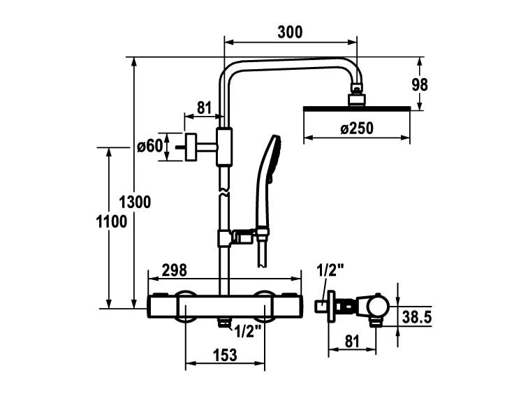 - Thermostatmischer fit| Duschgleitstangen-Set| DuschgleitstangenBrausehalter oben| HandbrausenBrausenschlauch| HandHandbrause KWC FIT-X trio| KopfHandbrause PIATTO-X R250
