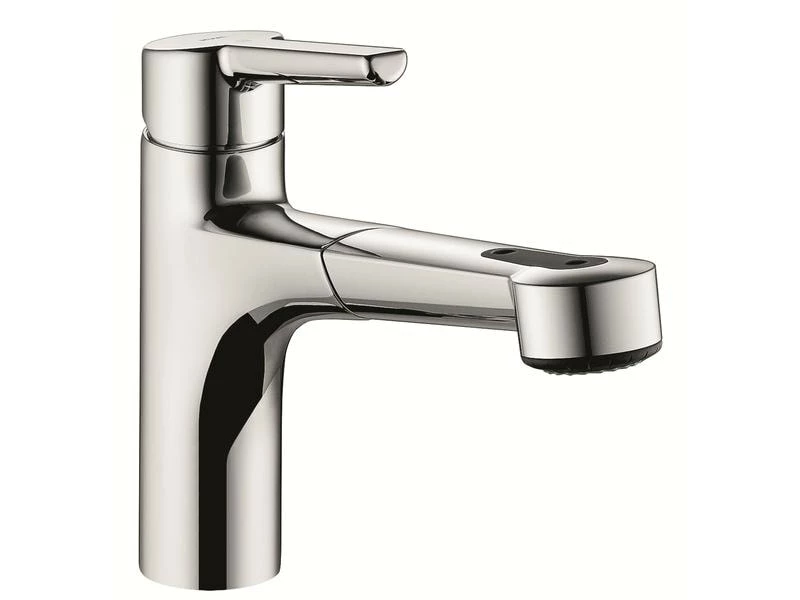 - Auszugbrause, bis 600 mm ausziehbar, PowerClean – Siebstrahlmodus, mit Rückstellautomatik, Schlauchoberfläche passend zu Armaturoberfläche, Schlauchdurchführung, EasyLock – einfache Auszugsbrauserückführung