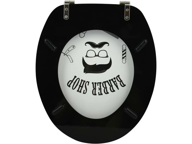 - Robuster WC-Sitz mit coolem Barber-Motiv