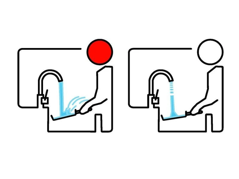 Durch einen im Strahlregler integrierten Dämpfer steigt die Durchflussmenge so sanft an, dass der Wasserstrahl selbst bei grosser Fallhöhe nahezu spritzfrei bleibt. Perfekt um Gläser, Tassen oder Töpfe zu füllen. Besonders geeignet für Armaturen mit grosser Fallhöhe zwischen Auslauf und Becken wie z.B. Küchenarmaturen und Elektronikarmaturen. Durchfluss ~16 l/min.