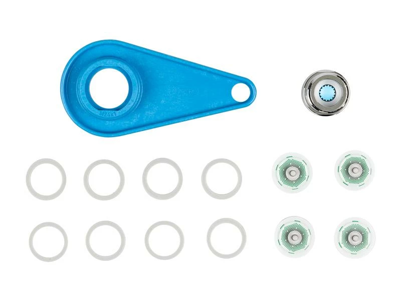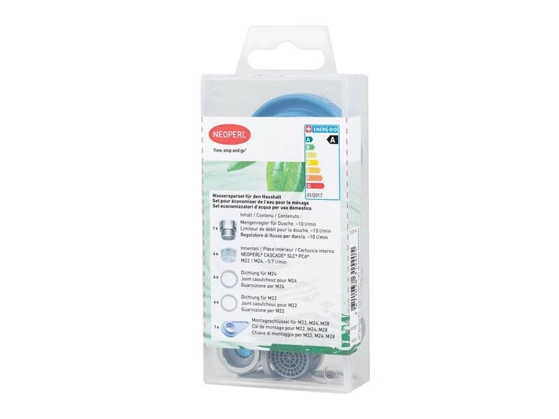 Das NEOPERL CASCADE SLC AC Wassersparset begrenzt den Wasserdurchlauf, sodass Sie Wasser sparen – ganz unabhängig vom Wasserdruck. Zudem überzeugt der Strahlregler mit einer einfachen Reinigung: Einfach den Kalk an der Elastomeroberfläche mit dem Finger abrubbeln, und der Strahl ist wieder weich und spritzfrei, ohne dass Sie die Mischdüse demontieren müssen! Das umfassende Set kommt mit dem entsprechenden Montageschlüssel.
