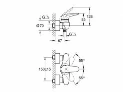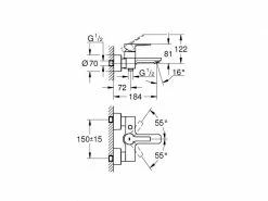 GROHE Badewannenarmatur Eurostyle Cosmopolitan 153 mm, 3/4″, Chrom