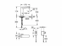 GROHE Lavaboarmatur Eurosmart S, Chrom, mit Zugstange/Strahlregler