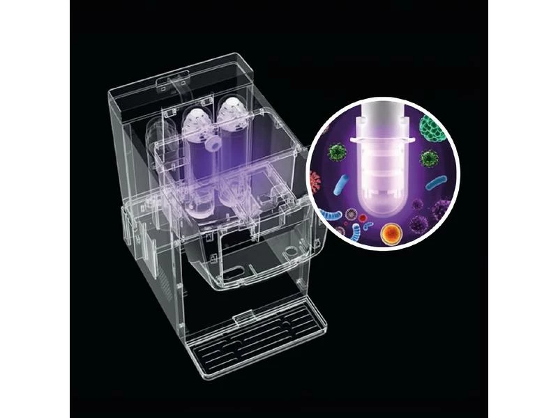 Kindersicherung, Anzeige für Wasser- und Filterwechsel, sowie Wasserwerte (TDS*) des Leitungs- und Osmosewassers. *TDS – digitales Wassermessgerät: zeigt die Gesamtmenge der gelösten Feststoffe an.