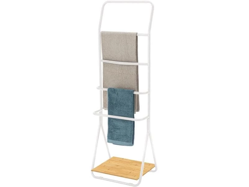 - Der praktische Handtuchhalter mit vier Stangen und zusätzlicher Ablage ist sehr stabil und platzsparend